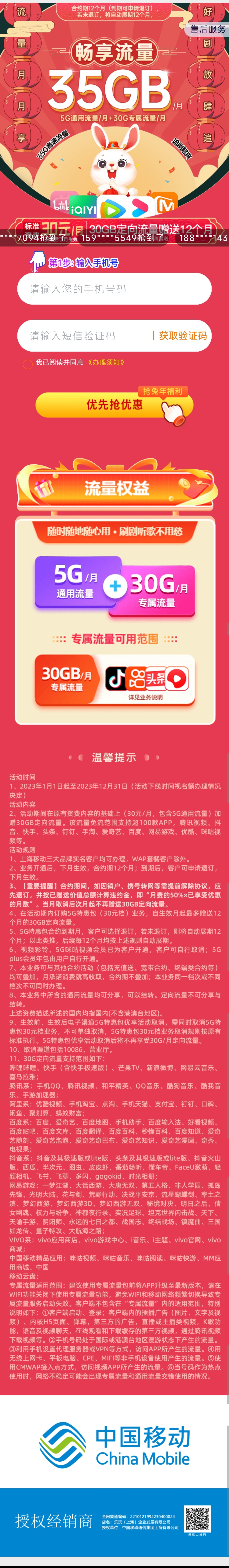 畅享35G流量,5G通用/月+30G专属流量/月